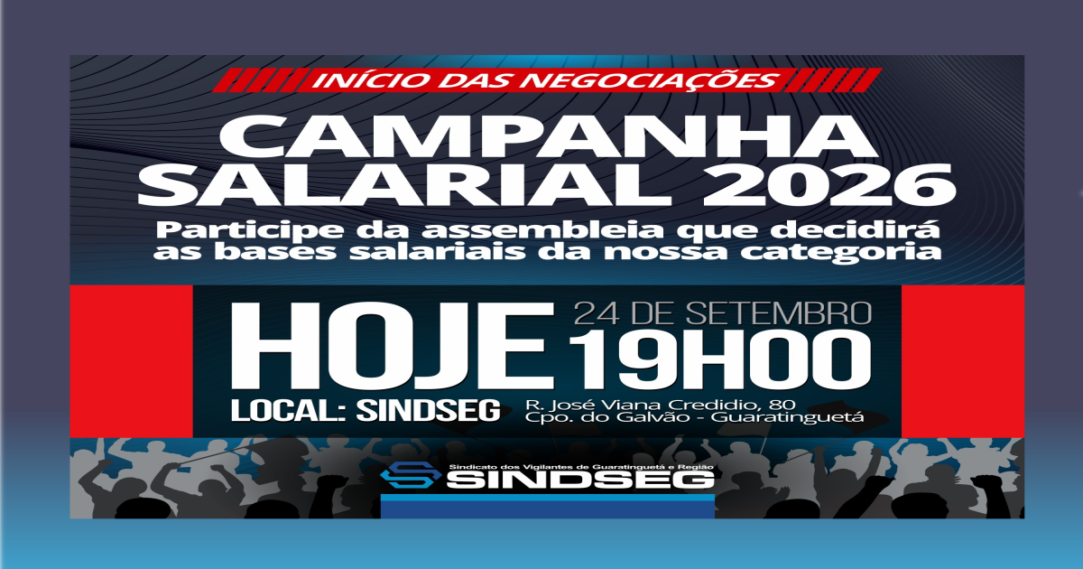 📢 Atenção, vigilantes! É HOJE! É hora de unir forças. Participe da Assembleia Geral da Campanha Salarial 2026 e ajude...